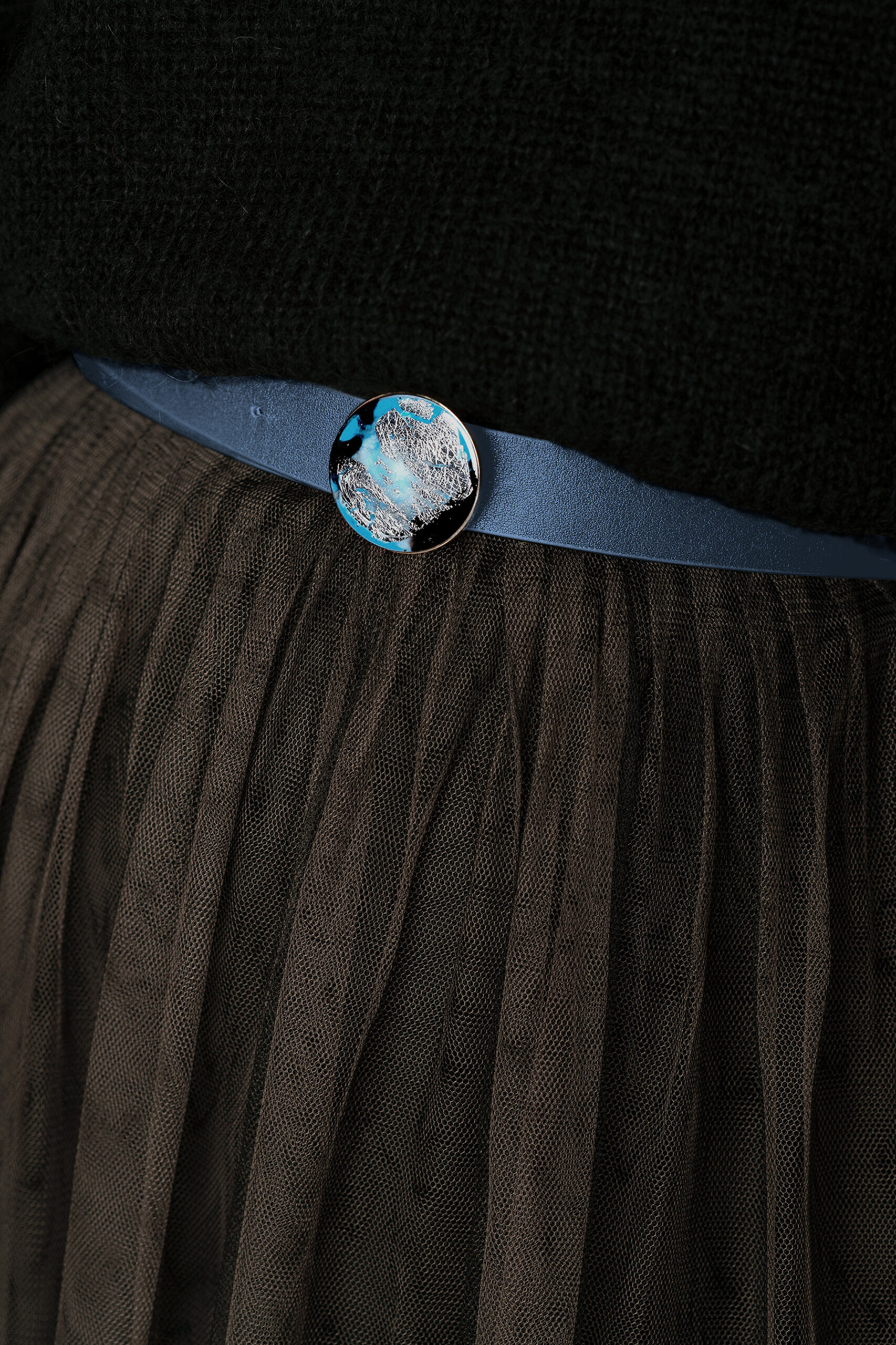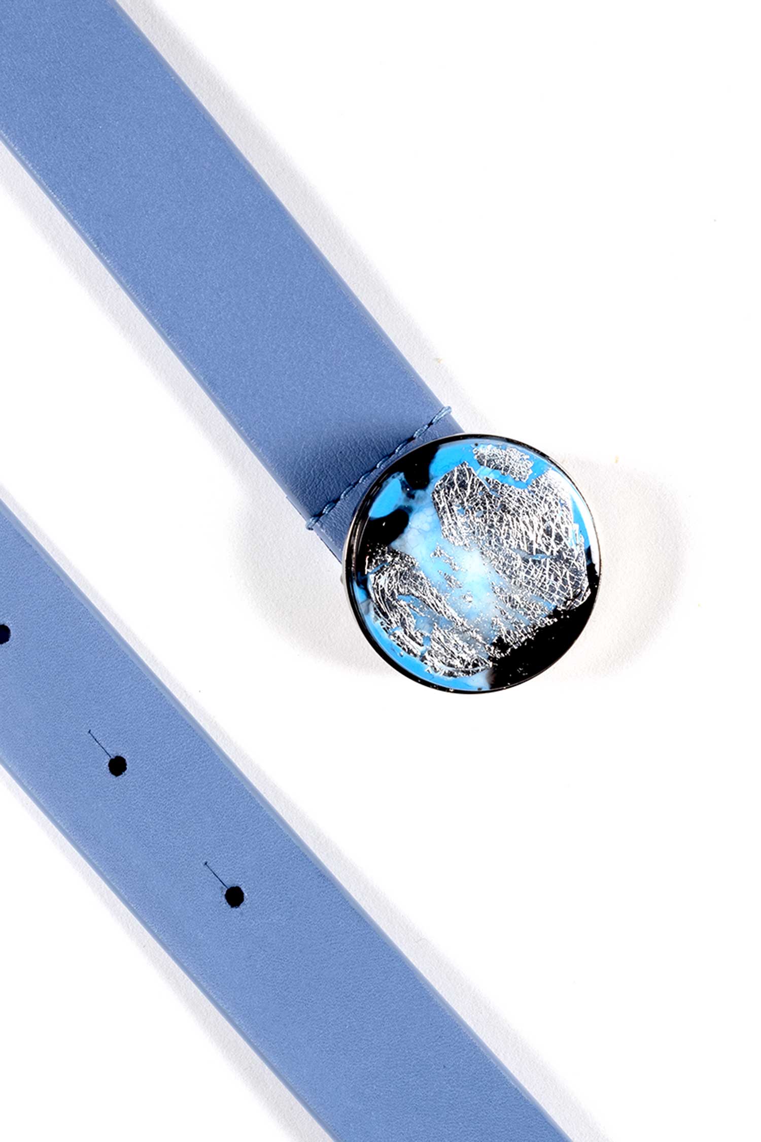 The buckle is a jewel stone made by hand in Eco resin and natural pigments in marbled and gold (silver) tones.