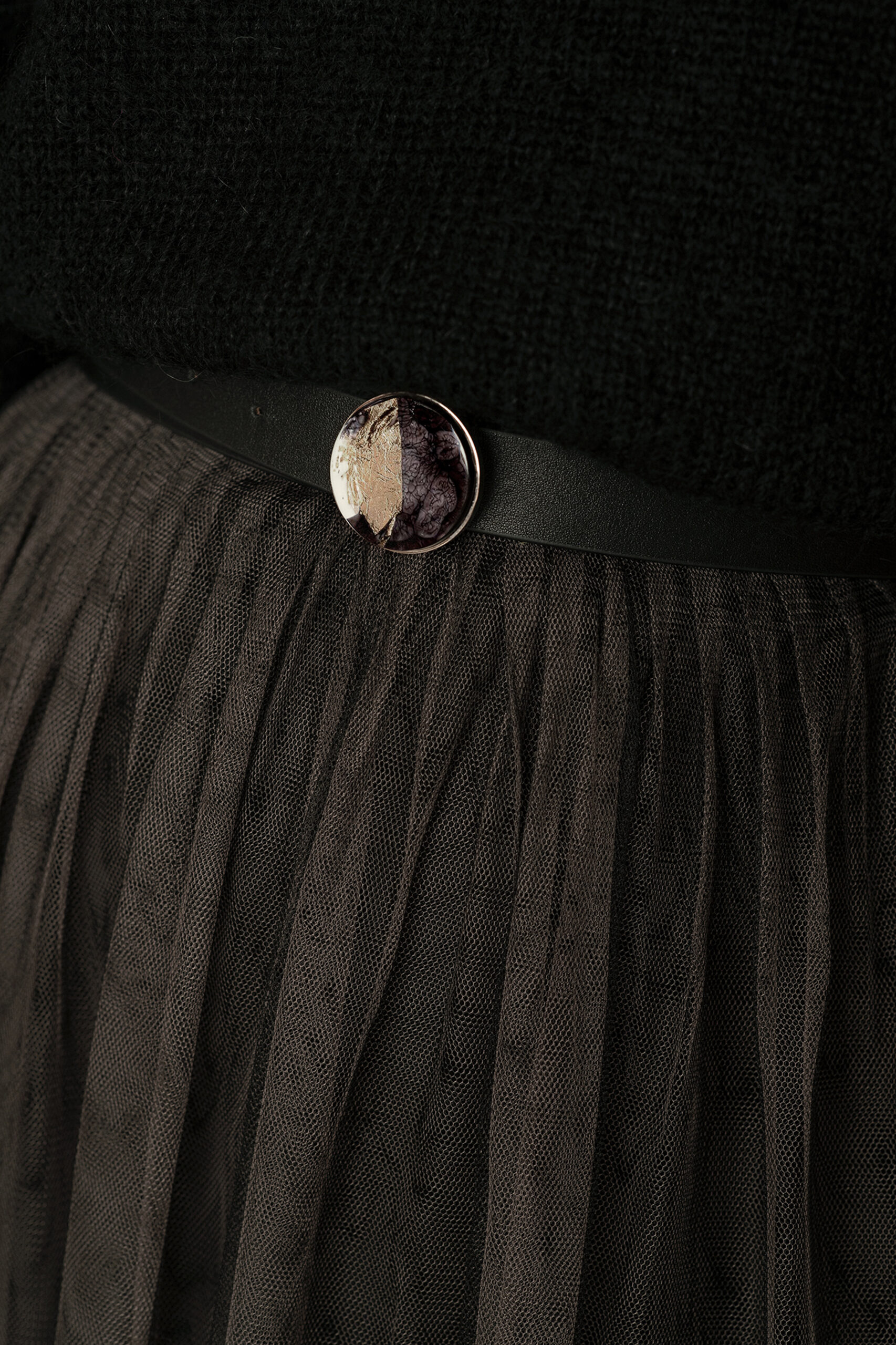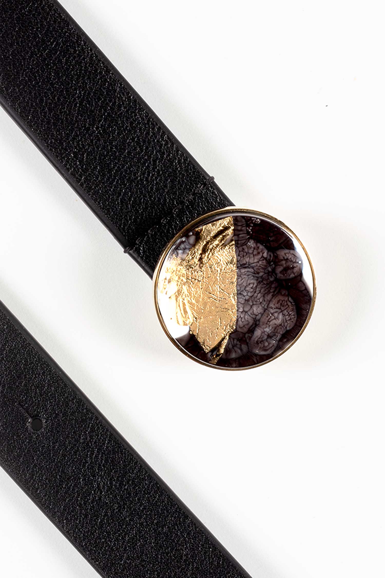 The buckle is a jewel stone made by hand in Eco resin and natural pigments in marbled and gold (silver) tones.